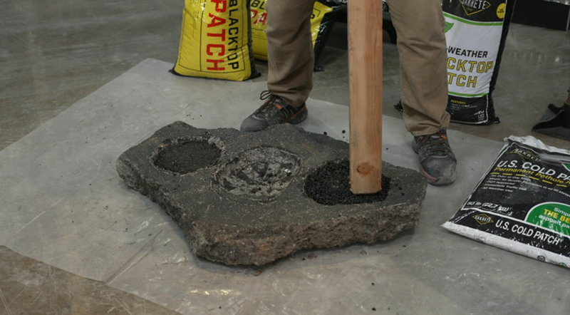 - Seleccione el Producto Sakrete Apropiado: Elija entre Sakrete Blacktop Patch, All-Weather Blacktop Patch, o U.S. Cold Patch según la disponibilidad regional y los requisitos específicos del trabajo.